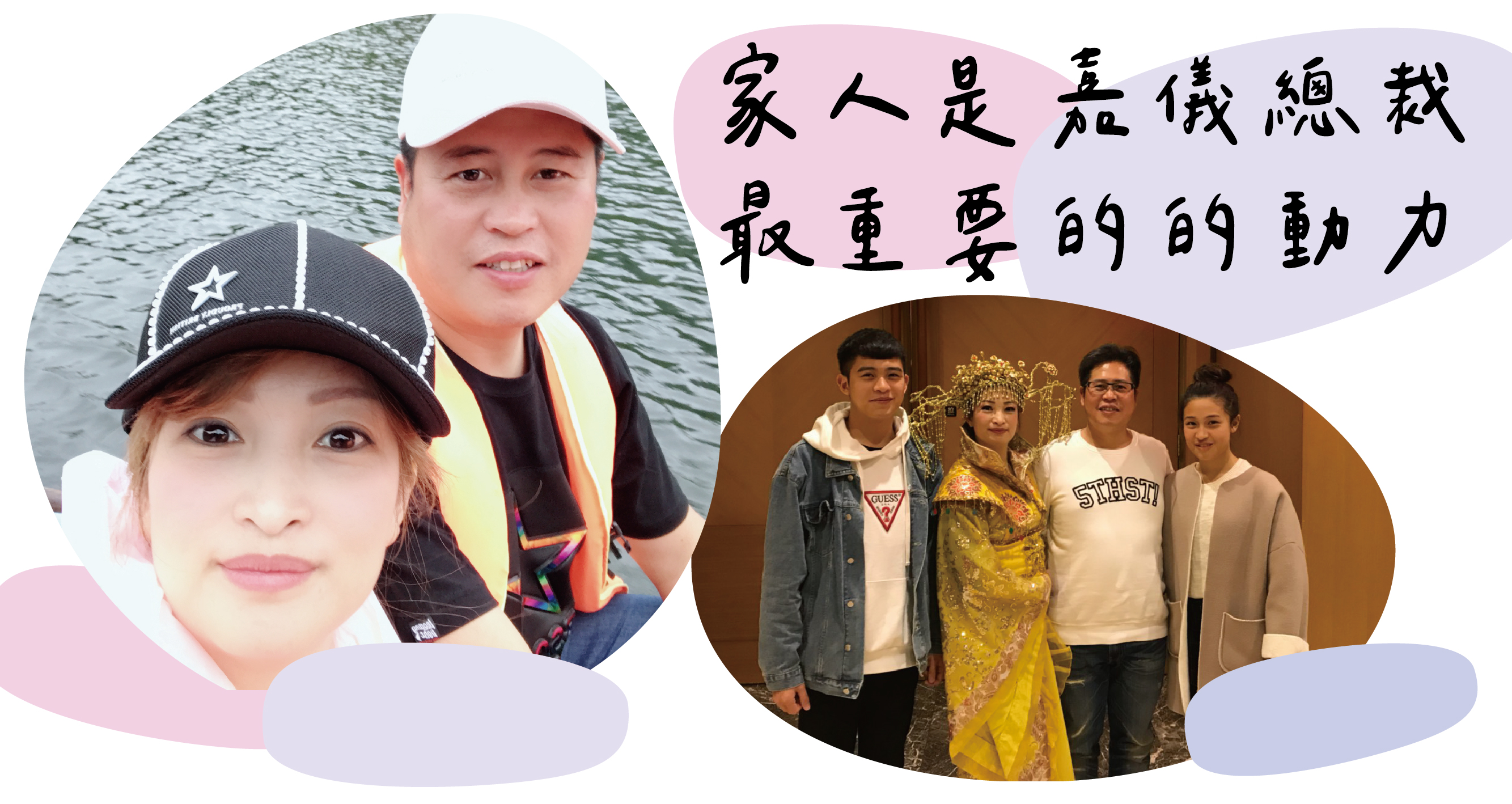 艱辛的童年時光使嘉儀總裁不願將來讓自己的孩子吃自己吃過的苦,對她來說,家庭就是驅使她行動的一切動力,結婚後原本只想當家庭主婦,普普通通的接送小孩過日子,但組織家庭並不容易,靠先生一個人的收入無讓家庭品質更好,要買房、要養小孩,薪資不足的狀態下無法有更幸福的家,她想著學了美髮既能照顧家庭也能加增收入,便繼續朝著開店的夢想努力,含辛茹苦地工作。